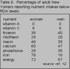 Table 5): vitamins A, B6 and B12, thiamin, niacin, calcium, iron, zinc,