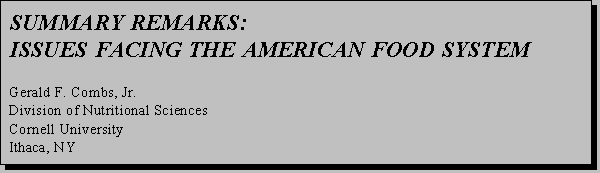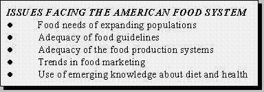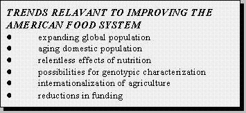 The American food system is the most complex and sophisticated in the world, providing the world's safest and most diverse food supply and comprising nearly a quarter of the US economy. Nevertheless, diet-related chronic diseases persist, imposing enormous societal costs which can be expected to increase as the age structure of the society continues to shift. Given the magnitude of these drains on the economy, it is appropriate, indeed good business sense, to consider costs of food system-based research, training and extension as investments in the society that will yield returns not only in the form of improvements in the quality of American life, but also in reduced health care costs and increased competitiveness of American products in the international marketplace.