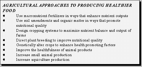 agricultural systems and, thus, improve the healthfulness of food supplies: