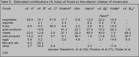 Table 5): vitamins A, B6 and B12, thiamin, niacin, calcium, iron, zinc,